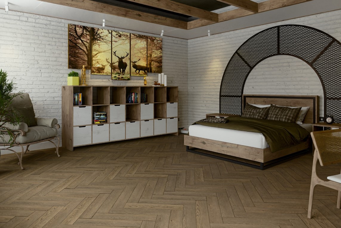 Дизайн "английская елочка" подчеркивает его историческую значимость, а универсальность укладки позволяет создавать уникальные композиции и эффективно использовать пространство.